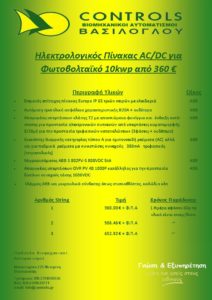 Προσφορά Ηλεκτρολογικού Πίνακα AC-DC για Φωτοβολταϊκο σύστημα 10kwp